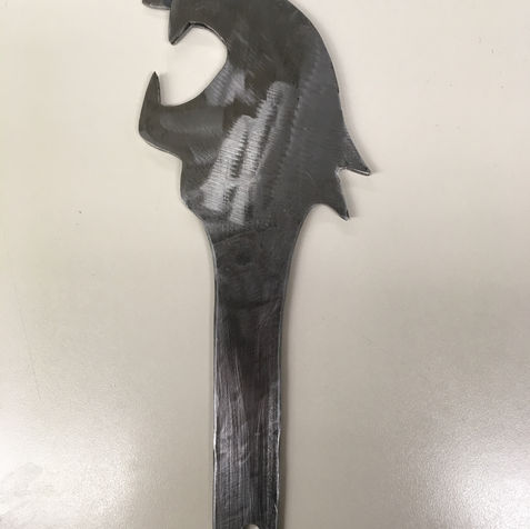 1. I traced the cougar logo outline and a handle onto a 1/16 inch steal plate.